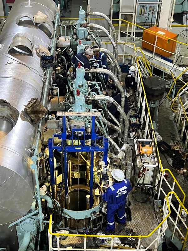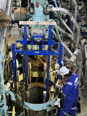 Our service team recently completed the honing of five main engine liners onboard a vessel anchored in Singapore, utilizing the Chrismarine HON X2 portable honing machine. The operation was carried out over a span of three days and involved precise in-situ machining to restore liner geometry and surface finish to optimal condition.